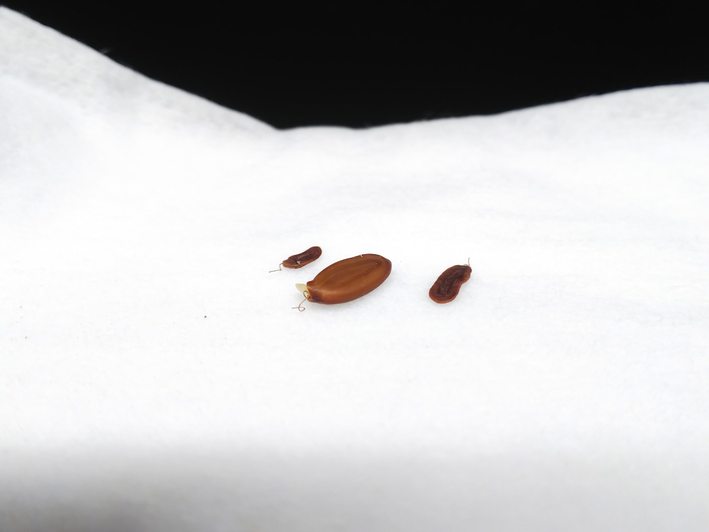 かぴかぴになった鞘を鋏でちょきちょきしながら採取出来たのは、たった3粒。