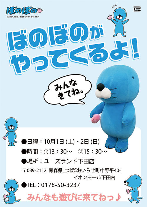 ぼのぼのくんが今度はユーズランド 下田店にやってくるよ!