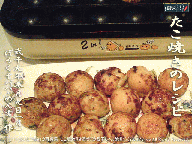 | <<<前のページ「3/8(日)たこ焼き」 ■このページ「3/9(月)たこ焼きのレシピ」 ■最新更新ページへ>>> | ||||||||||||||||||||||||||||||||||||||||||||||||||||||||||||||||||||||||