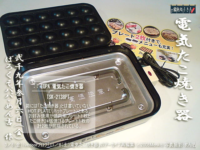 | <<<前のページ「3/6(金)電気たこ焼き器」 ■このページ「3/7(土)たこ焼き屋のたこ焼き」 ■最新更新ページへ>>> | |||||||||||||||||||||||||||||||||||||||||||||||||||||||||||||||