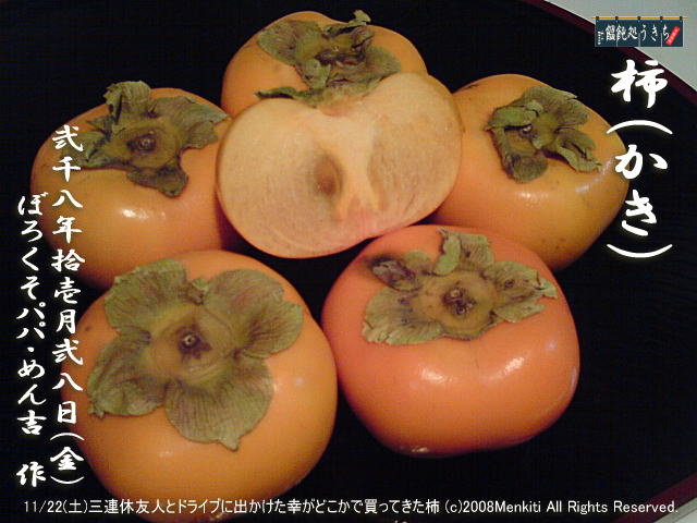 このブログ「柿(かき・カキ)」の右上の写真「柿(かき・カキ)」は、幸が友達とドライブに出かけた時にどこかで買ってきた柿(かき・カキ)。