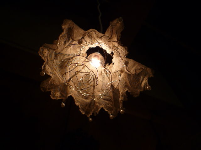 フランスのアンティークレースを使ったシェード。下部はワイヤーでバラの形になっています。