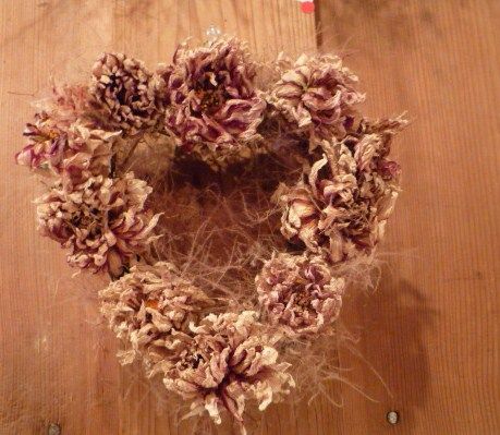 ハート形のダリアのリース。