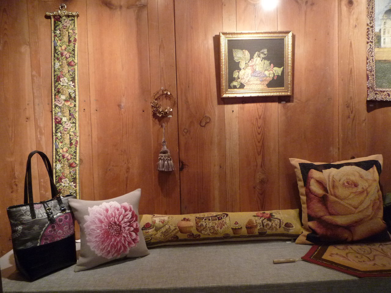 壁面にはフレームに入ったゴブラン織り。まさに、織物の絵画です。
