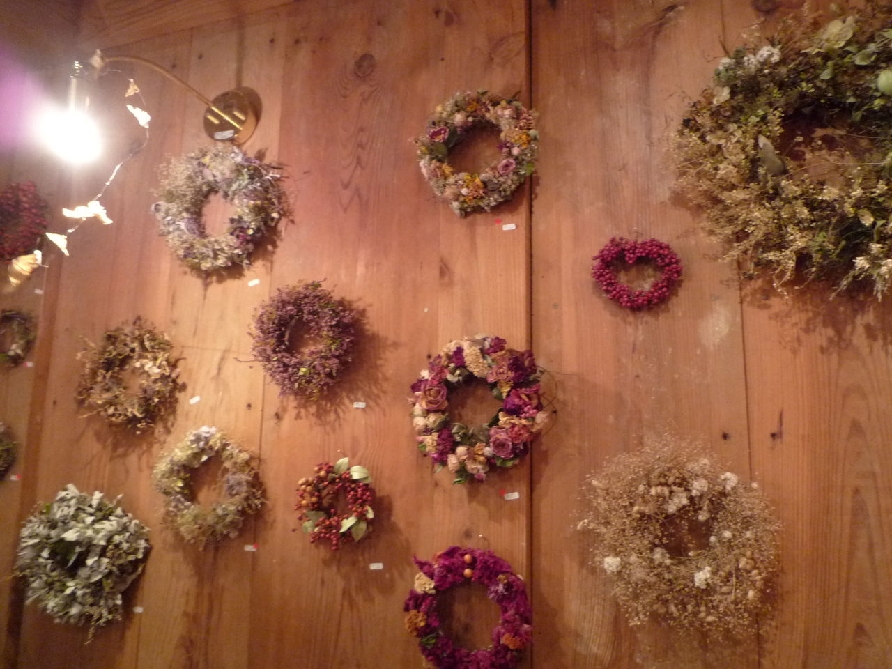 のりこさんが産み出したリースや照明を、どうぞ、間近でご覧になってください。