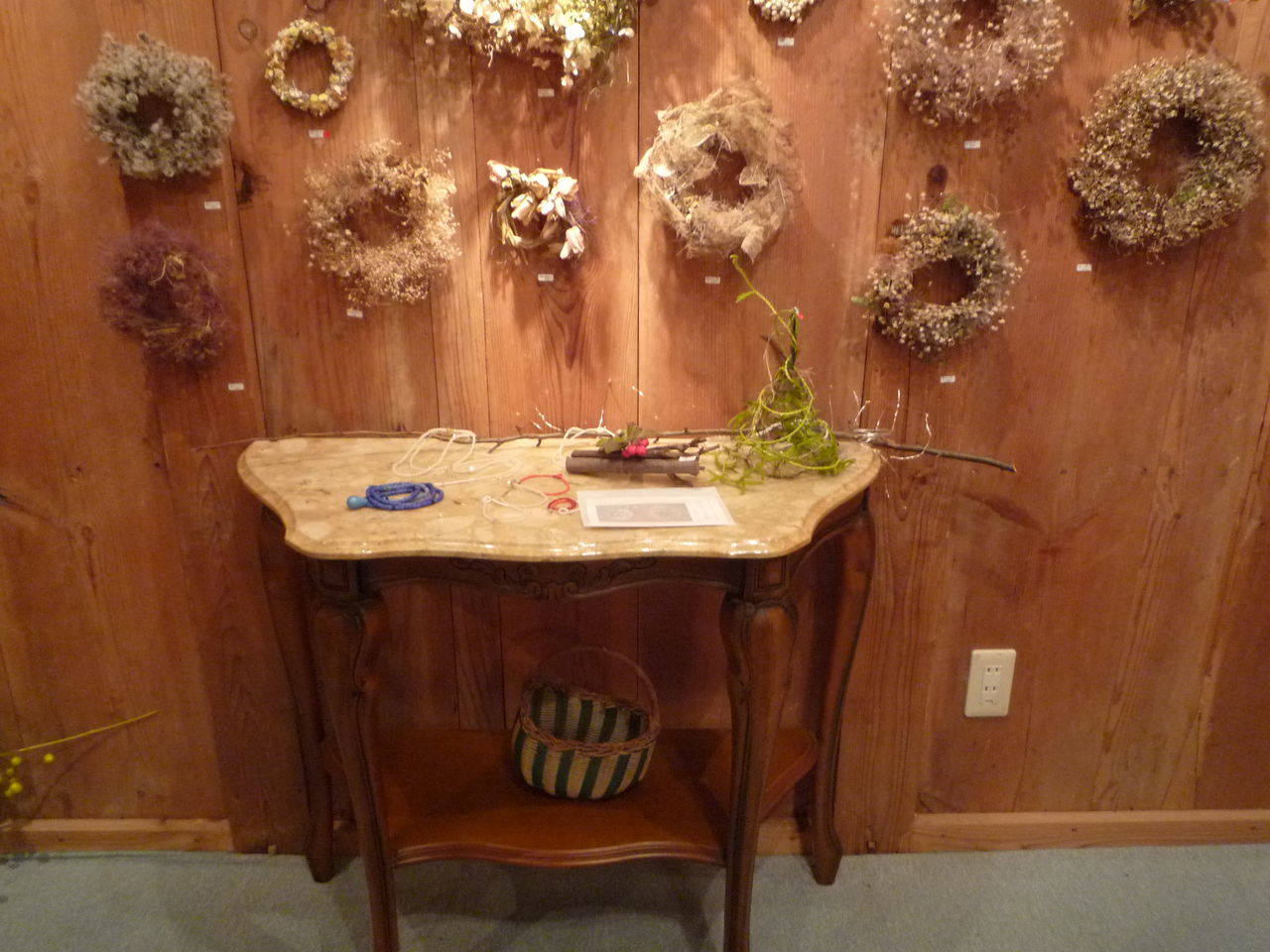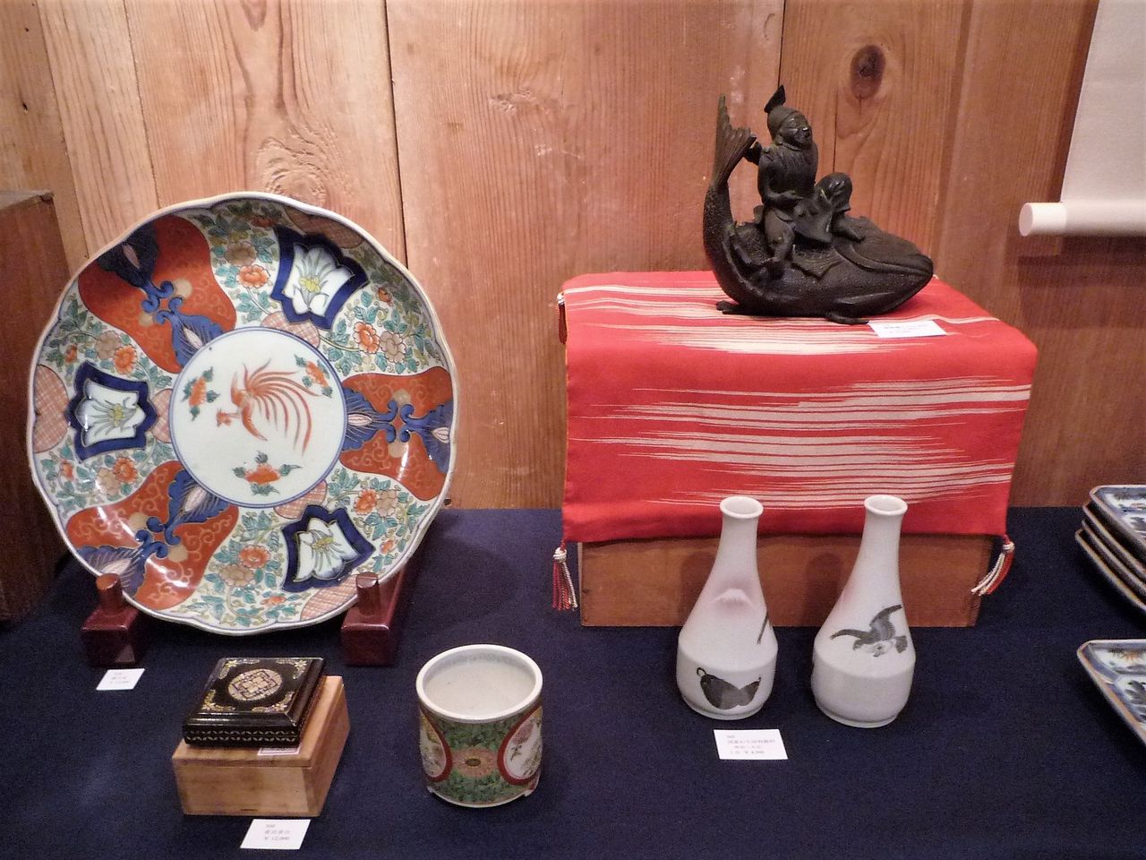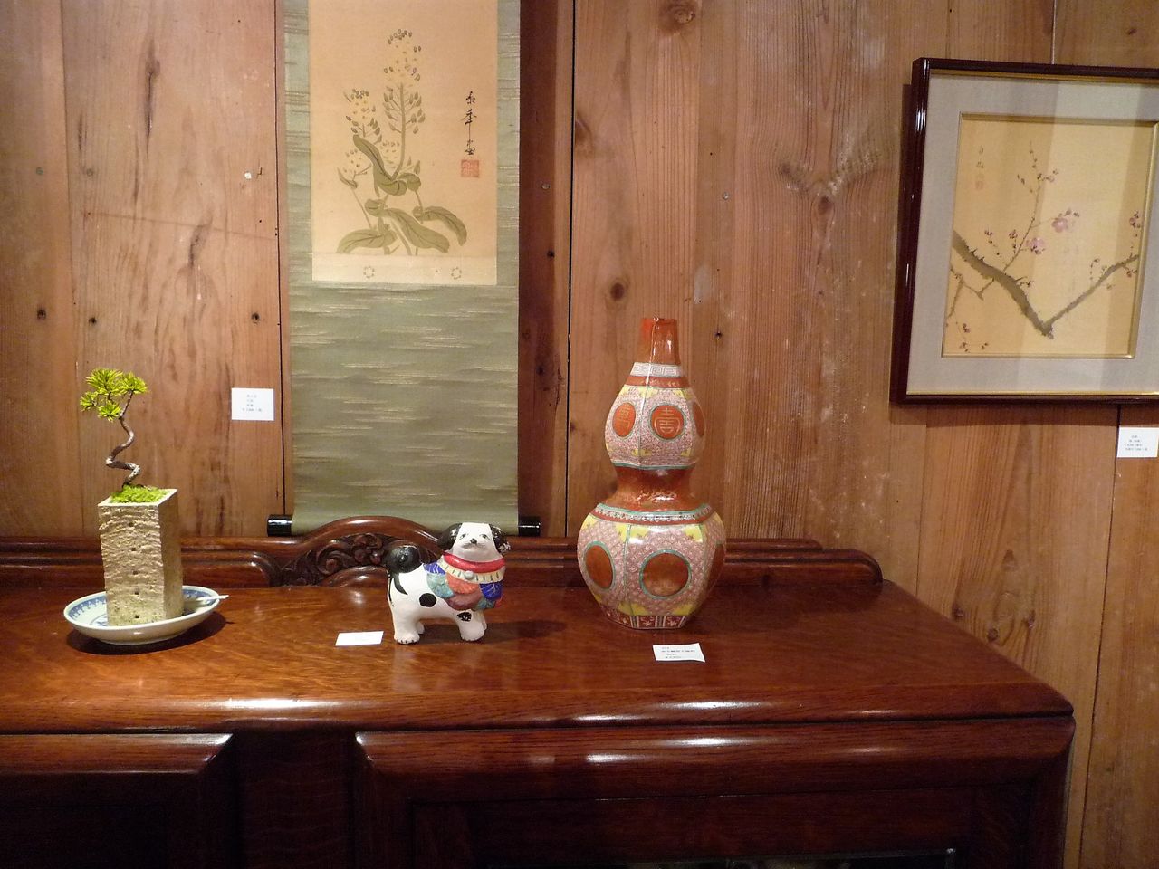 組紐、海老飾り、貝合せ、海地さんの盆栽(小さなのぞきに入っています)