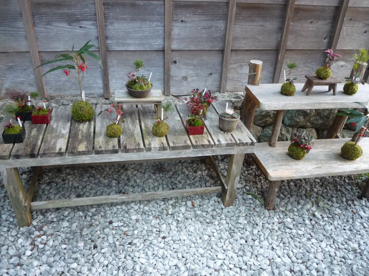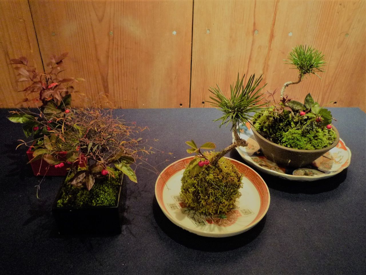 海地さんのこけ玉と盆栽。 お玄関や居間にこれを飾れば、お正月の雰囲気がでますね。