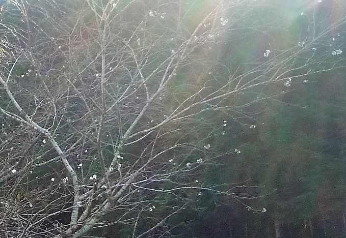 土佐和紙工芸村に1本だけある「ジュウガツザクラ」がチラホラ咲き始めました。