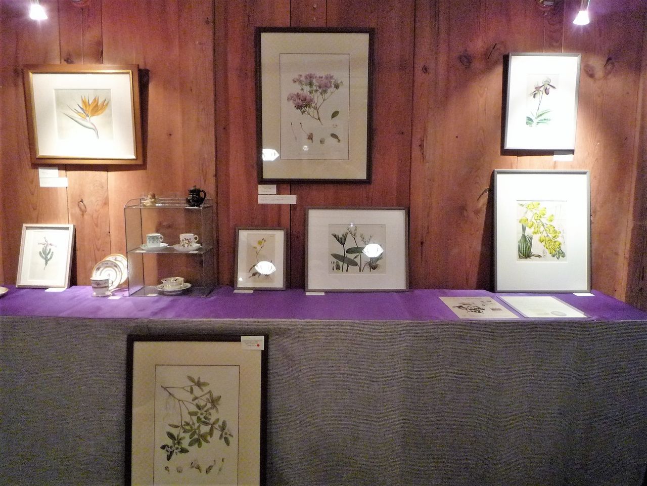 会場に並ぶ美しいルドゥーテのバラなど植物画の名品、優品を
