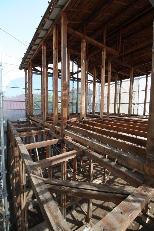 再建築不可のかなり古い物件のため柱を残し大々的に改装に入ります。