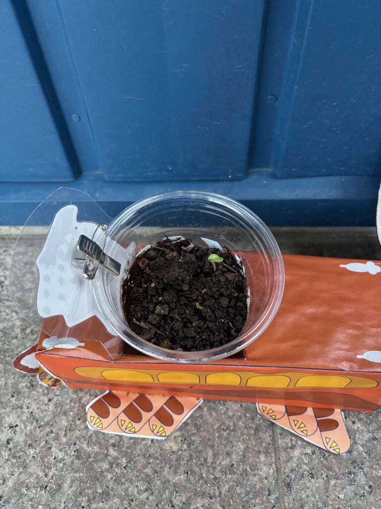 ネコバスのフラワーポットにビーバースカウトは花の種を植えて、