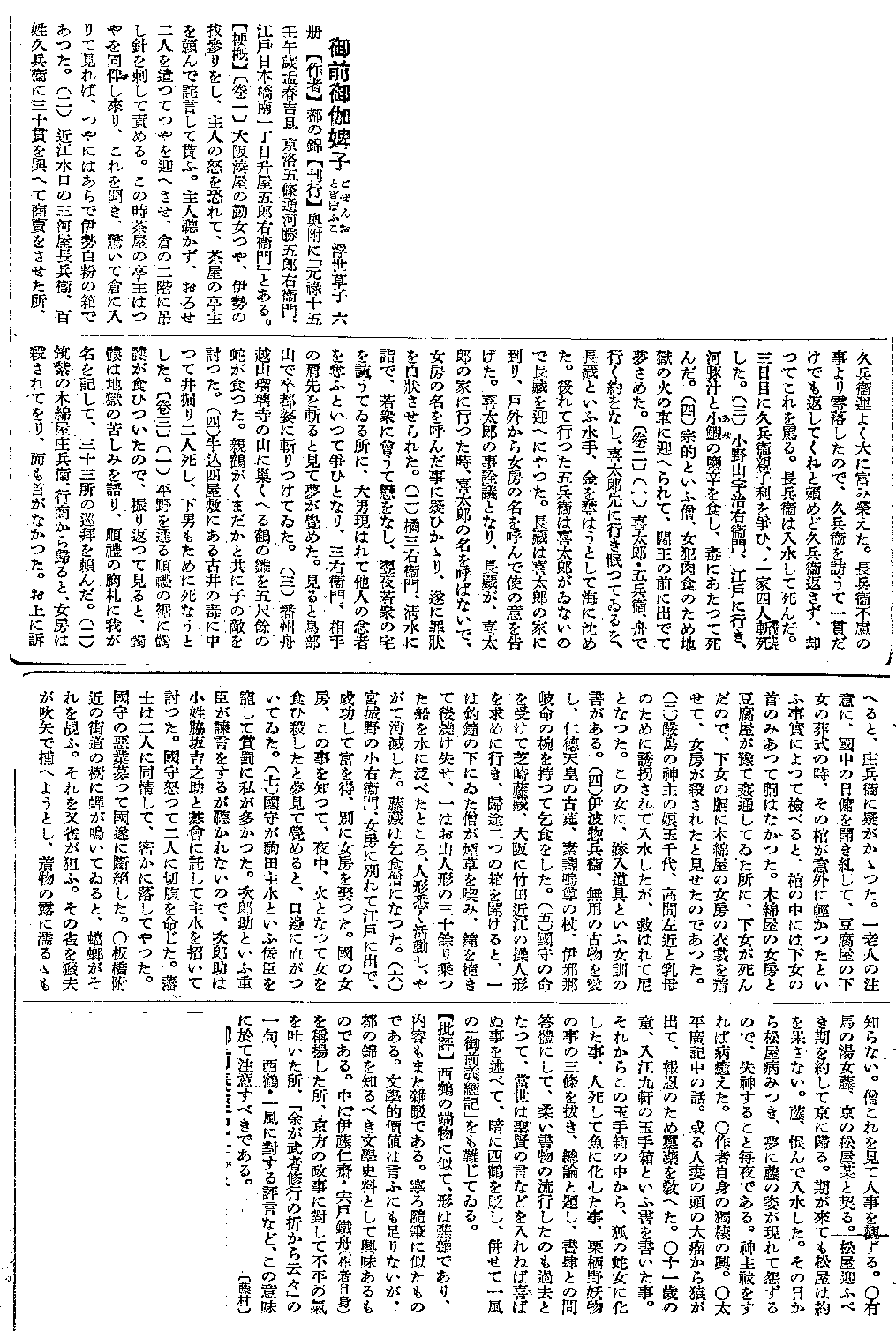 藤村作・御前御伽婢子・新潮日本文学大辞典
