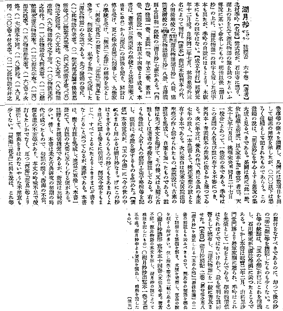 池田亀鑑・湖月抄・新潮日本文学大辞典