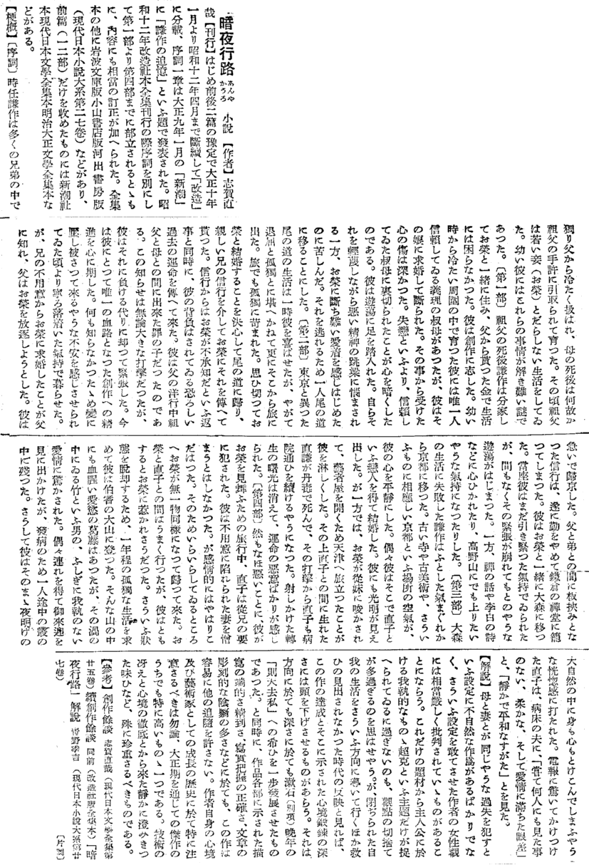 片岡良一・暗夜行路・新潮日本文学大辞典