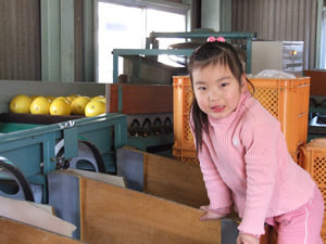 乳母車をついて文旦を荷作りしている仕事場へやってきて、