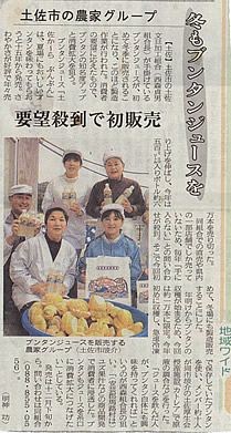 12月25日付けの高知新聞朝刊に、 「冬もブンタンジュースを!」