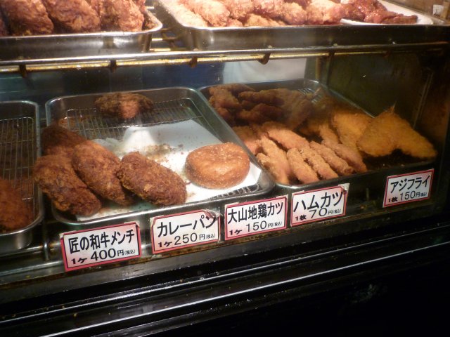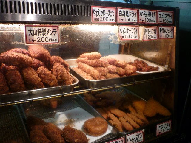 【100円メンチは休み】 【ハムカツは70円】 【前のテーブルも満員です】