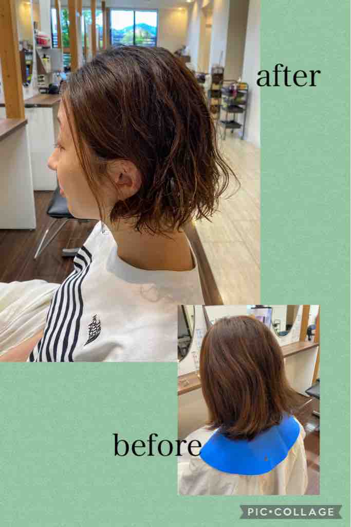 毛量も多く少しクセ毛のTさん、内側は刈り上げて毛量調節してあり、バランスも取りやすいスタイルです