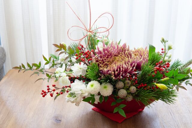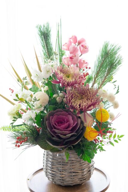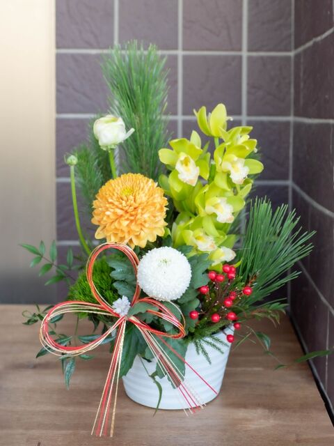 ①お正月生花アレンジは、4000円〜承ります。(器付き)