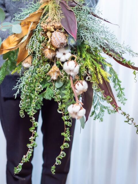 プリザーブドフラワーの杉などグリーンで