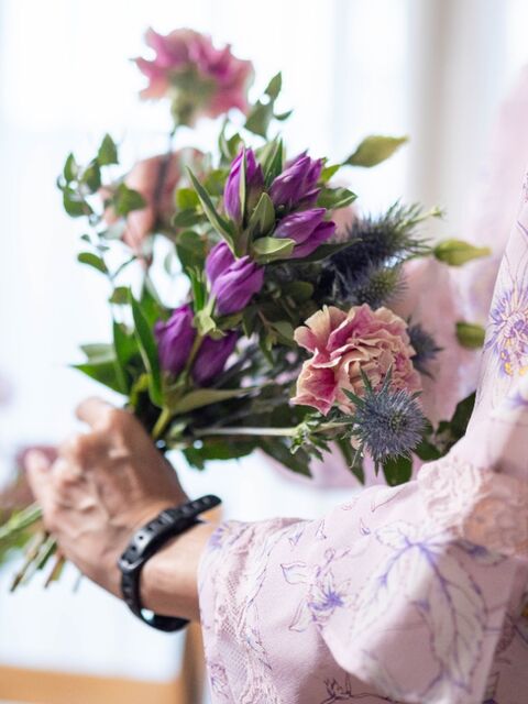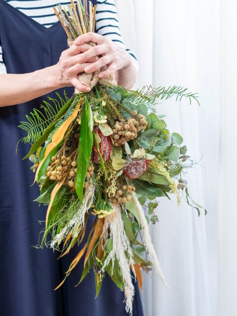 たくさんのグリーンを、がんばって束ねてもらいました。