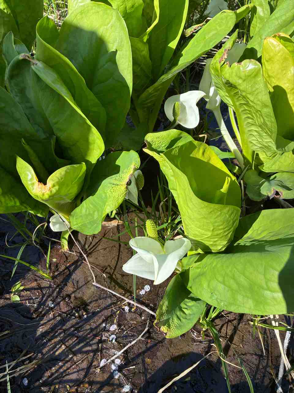 水芭蕉がまだ咲いていて、葉が茂ってはいましたが真っ白できれいです。