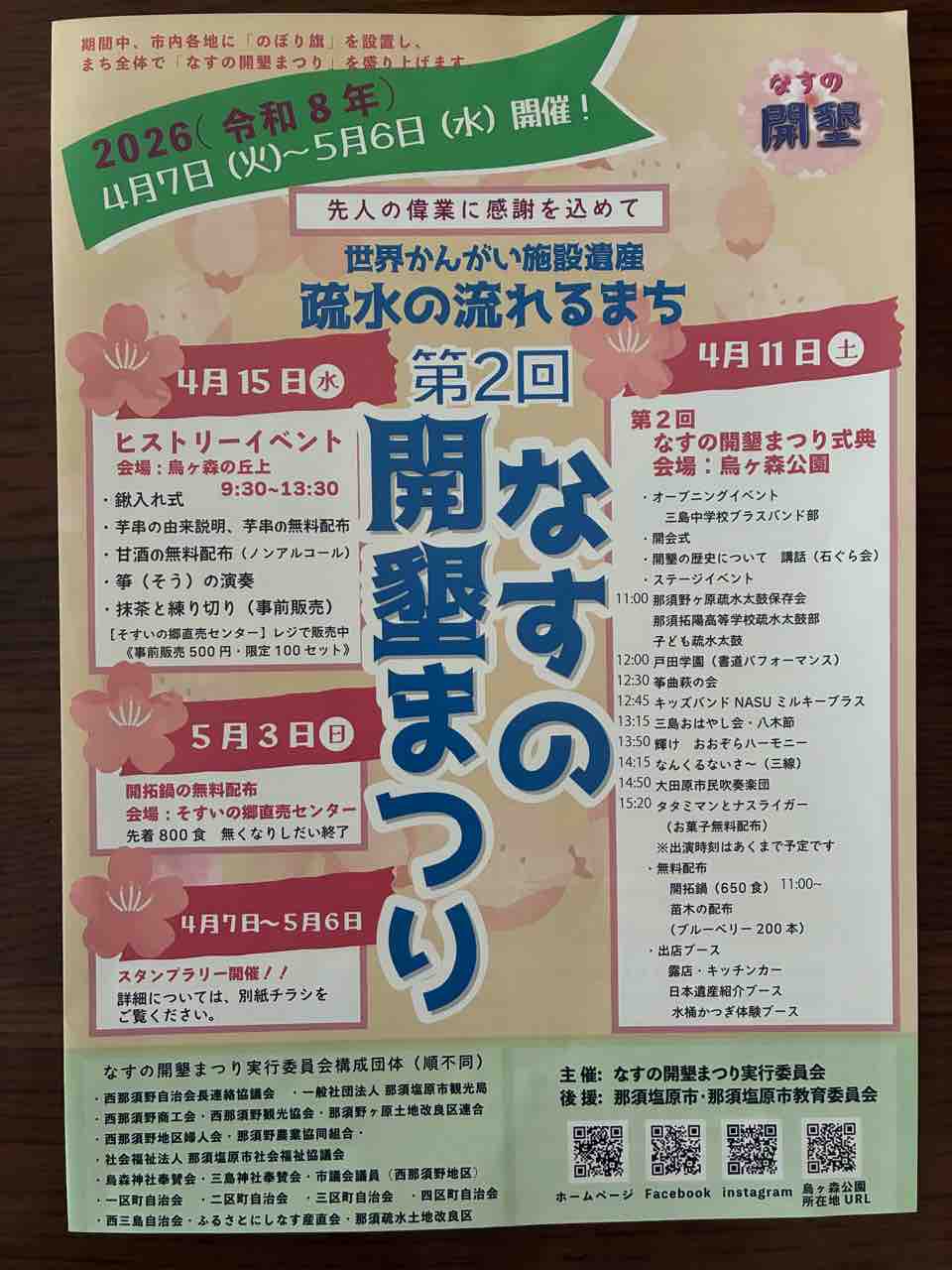 新聞に「第2回なすの開墾まつり」のちらしが入っていました。
