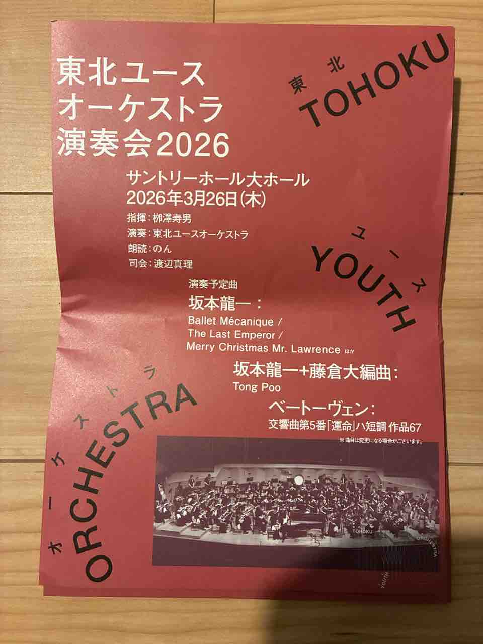 「東北ユースオーケストラ演奏会2026」を聴きにサントリーホールまで行ってきました。