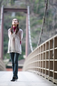 こういう悪路を歩くとき、普通は手をかしてエスコートするのが男として当然だけど、相手がモデルさんで、僕がカメコ活動真っ最中だと、どうして良いものか迷う。