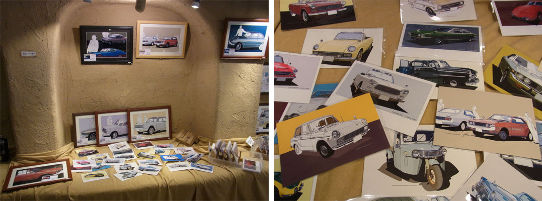 「昭和レトロな懐かしいクルマ絵」は前原さん。旧車のイラストを制作、展示されています。