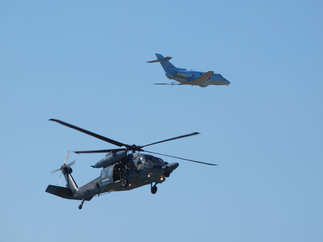 この後、KC-767とC-130Hの模擬空中給油、C-130HとUH-60J(救難ヘリコプター)2機の編隊飛行などもありました。