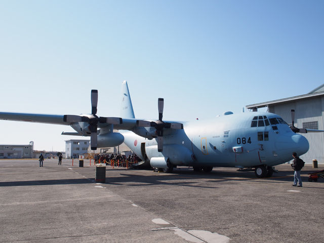 C-130Hは、後部の大型ハッチ?からお腹の中をを見学できる展示をしていました。沢山の人が並んでました。