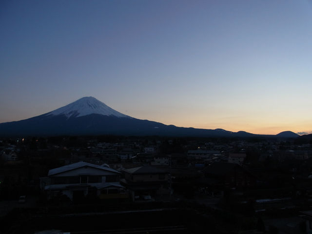 宿の屋上から、夕刻の裏冨士。