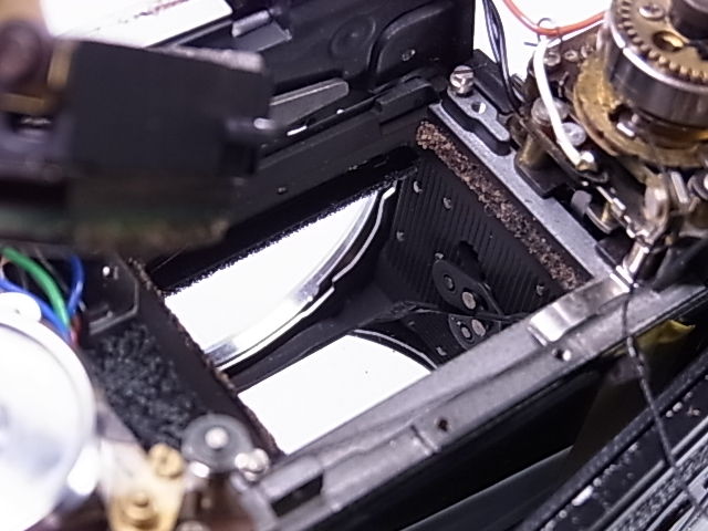 ファインダークリーニングはプリズムを降ろして行います。また、スクリーン枠はメーターユニットと一体なので一緒に降ろします。