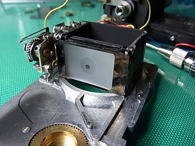 上写真はファインダーブロックに組付いた状態で、茶色の部分がCdS基板です。