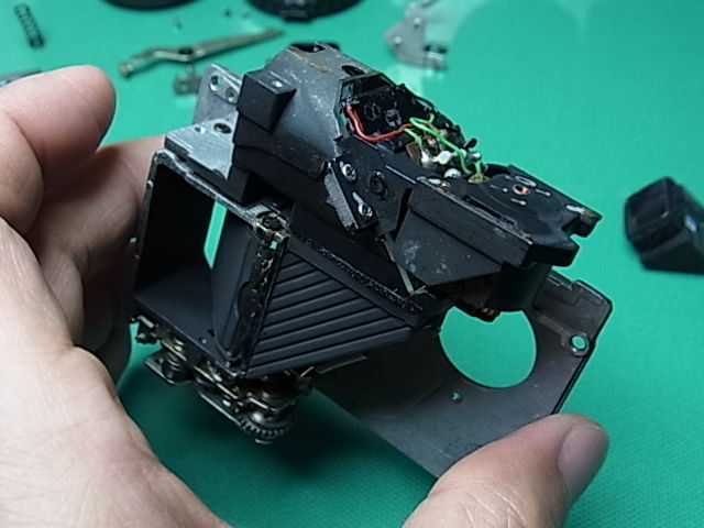 レンズボードブロックから露出計周りを外した状態。