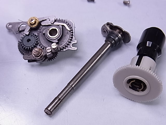取外した巻上げユニットと、交換用のスプールと、その軸部品です。