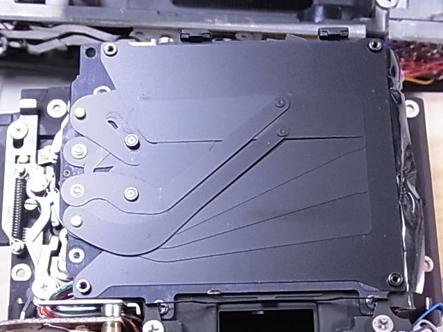 レンズボードを外しますと、縦走り金属幕シャッターユニットまで付いてくる構造。