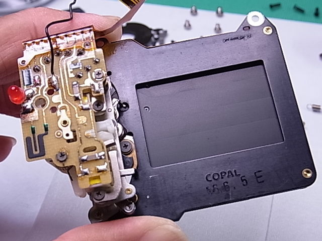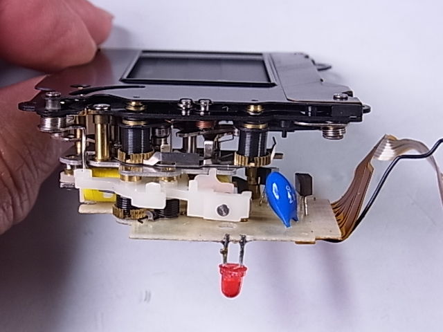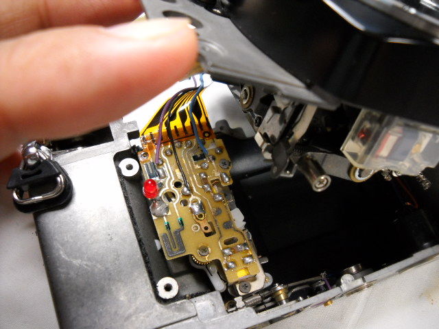 シャッターユニットの電子基板から生えた、セルフタイマー用の赤色LED!