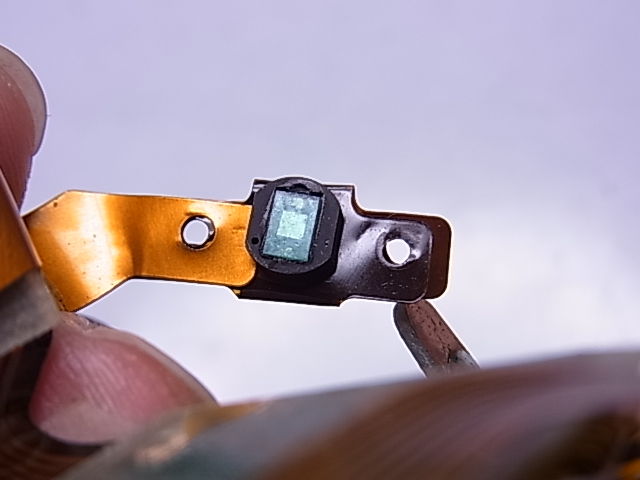 受光素子。従来、接眼部左右に配される例が多かったですが、これはセンター1個のみ。