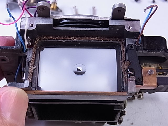 さらにプリズム枠を取り去ると、やっとフォーカシングスクリーンに到達します。