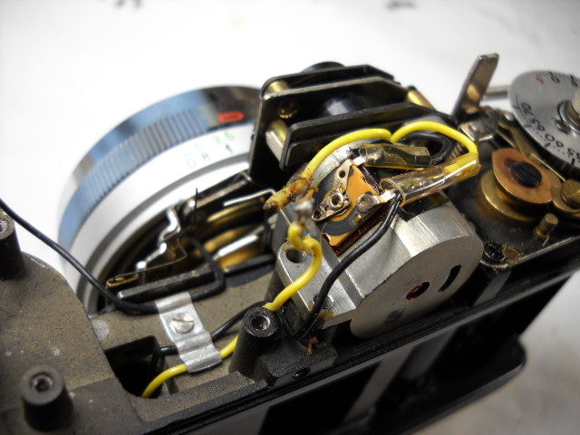本機の露出計の整備のためハンダを外し、再び結線するところでハーネスが劣化していて、なかなか付かないことがあります。