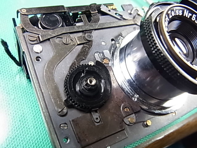 フィルム感度設定と絞りダイヤル側。絞りはカムで伝えます。