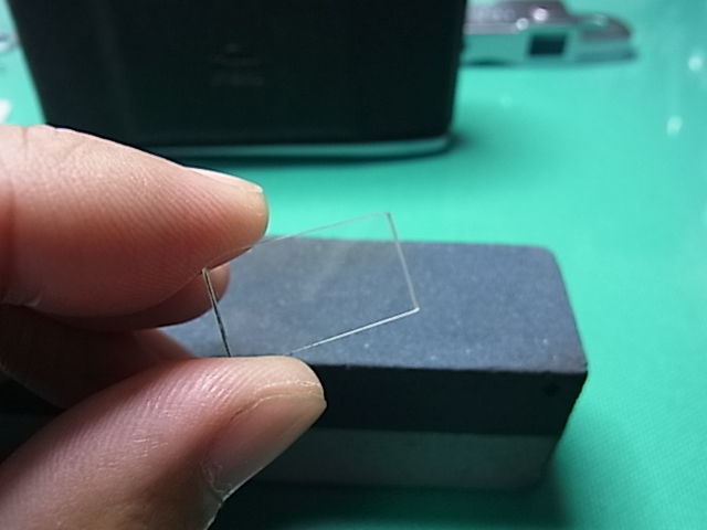 とりあえず、透明な接着剤で直してはみたものの、ファインダー内の露出表示部真ん中に亀裂が見えてしまいNG。
