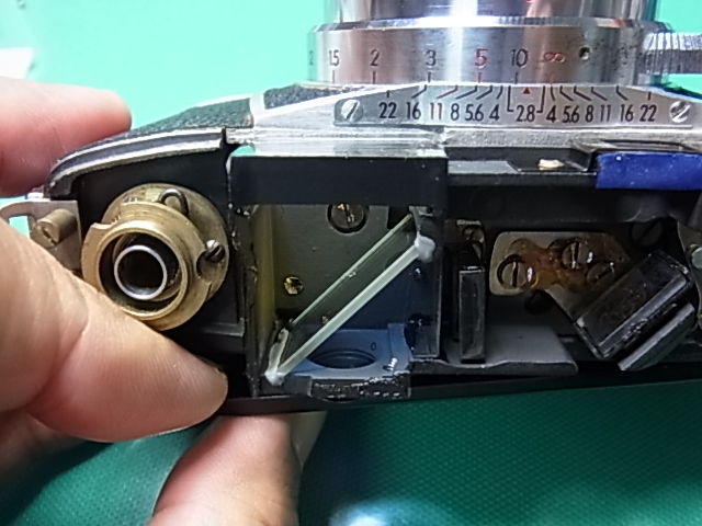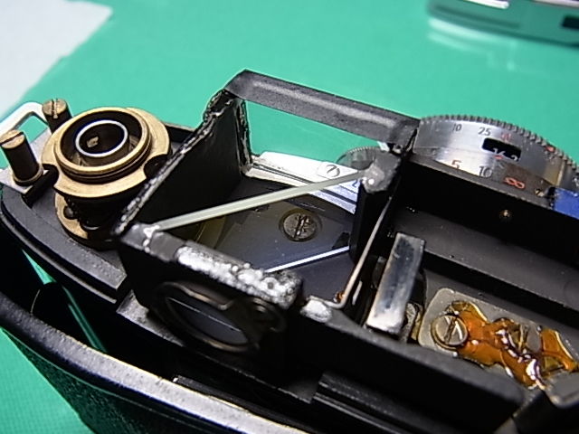 距離計の二重像がほとんど判別できない状態でしたので、他機種からハーフミラーを移植することに。