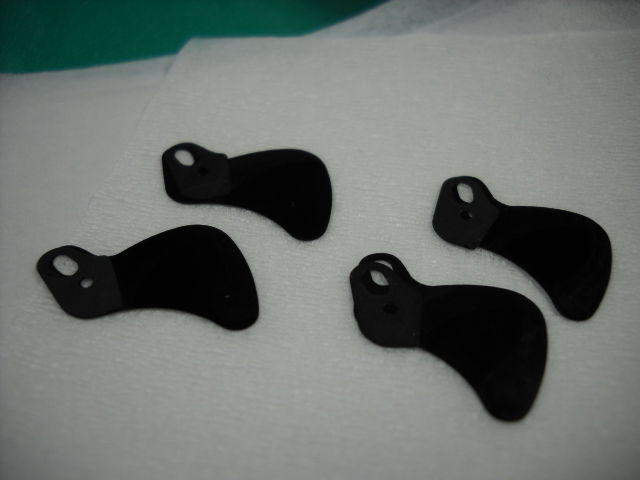 下は同じサイズに切り出した表面鏡。保護用にフィルムが貼られていますので、それをマスキングに利用し蒸着部分を剥がす作戦です。