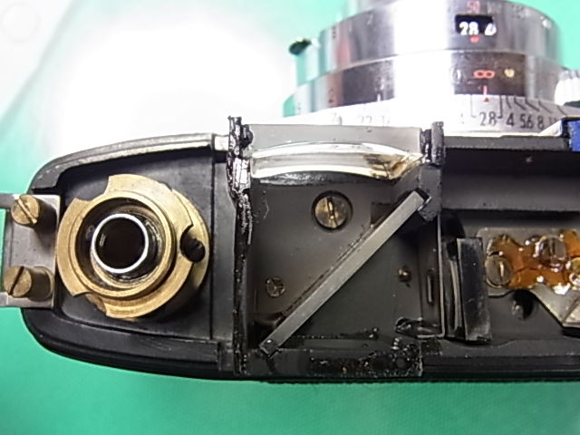 ファインダー周りが大変汚れておりクリーニングしましたが、ハーフミラーの蒸着がほとんど剥れていました。