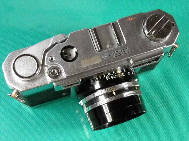 本機は1960(昭和35)年発売の露出計付き距離計連動レンズシャッターカメラです。