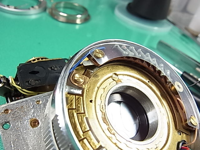 この後、シャッターユニット、各リング類、摺動抵抗やコンタクト部分など各所の整備をします。