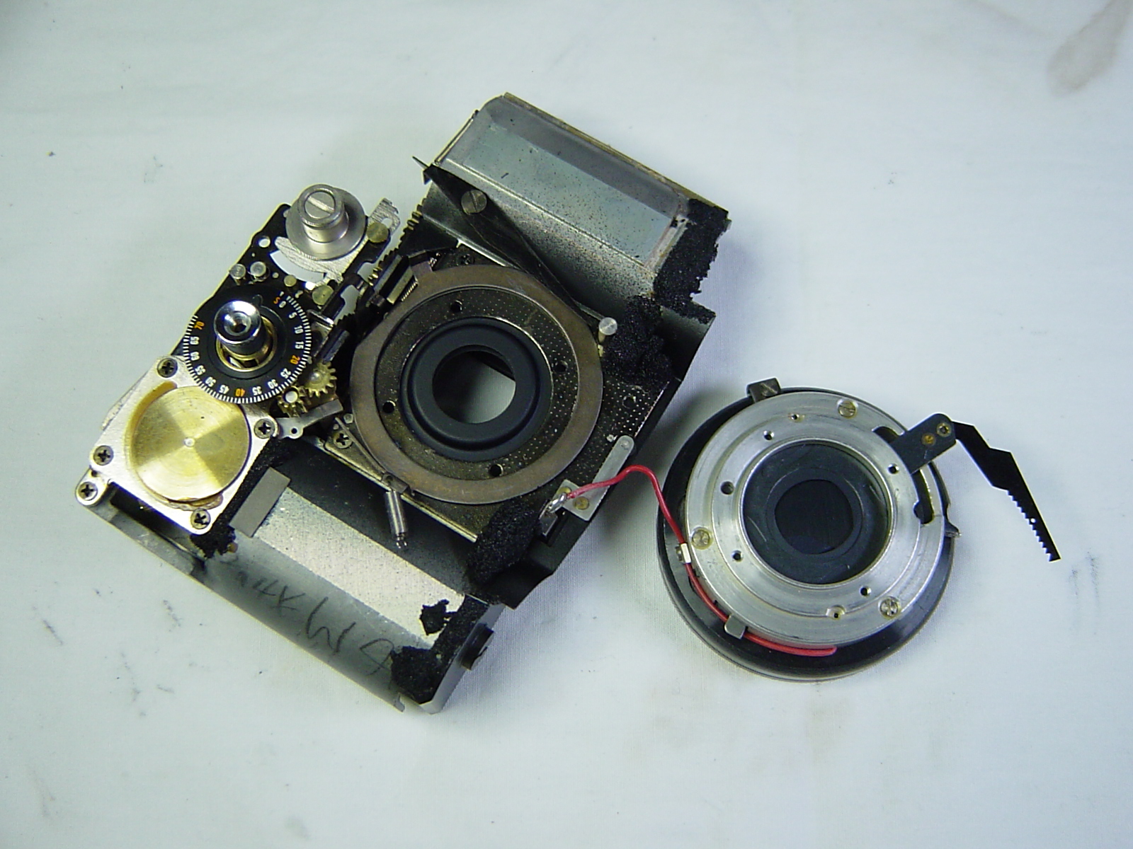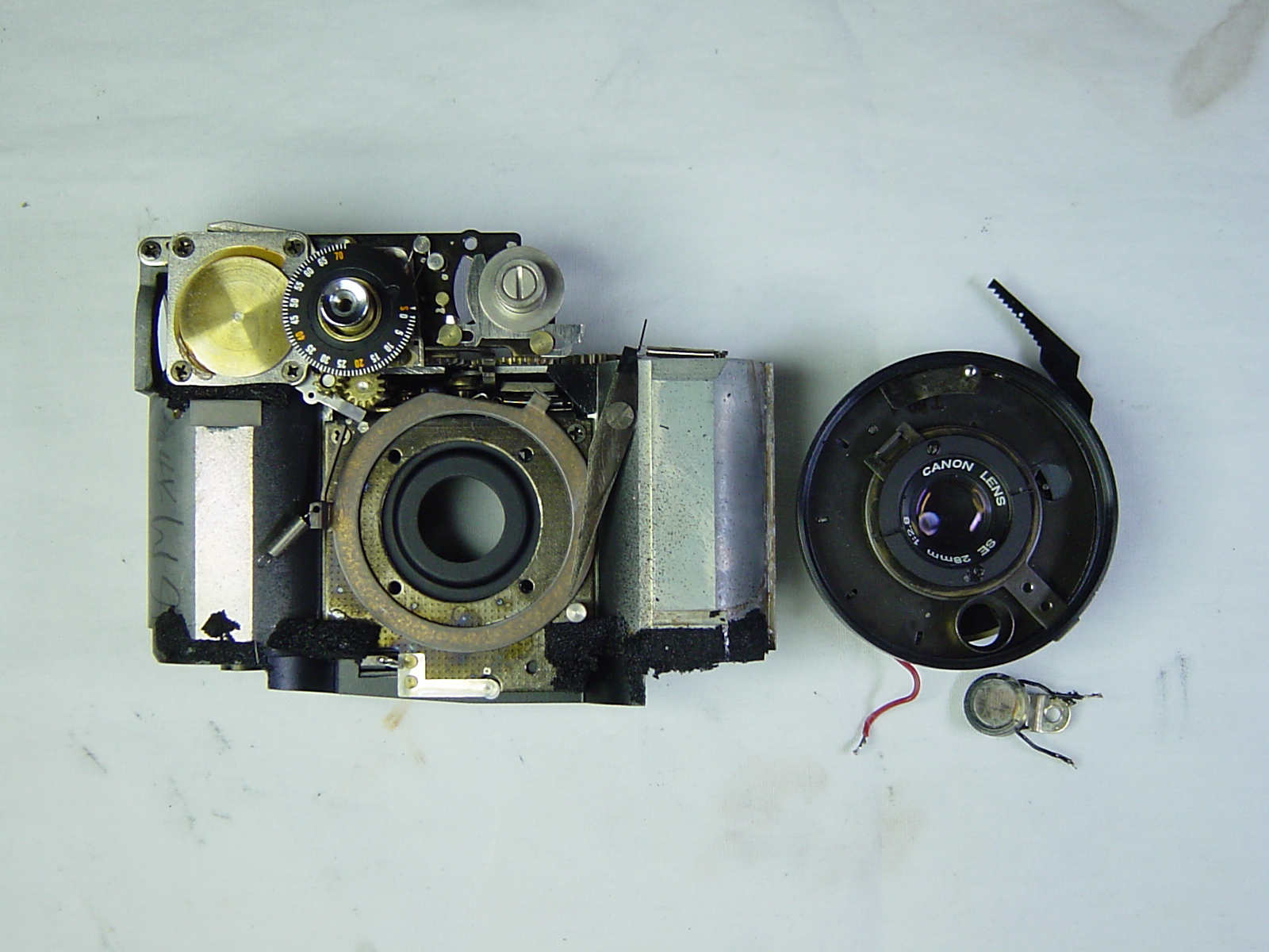 レンズハウジングを外すということは、カメラのダイアル(名前の通り)部分と本体の間で情報をやりとりする部分は全て外れてしまうということですから、メモを取るなり写真を撮るなど記録しておかないと、元通りに組み立てられなくなってしまいます。